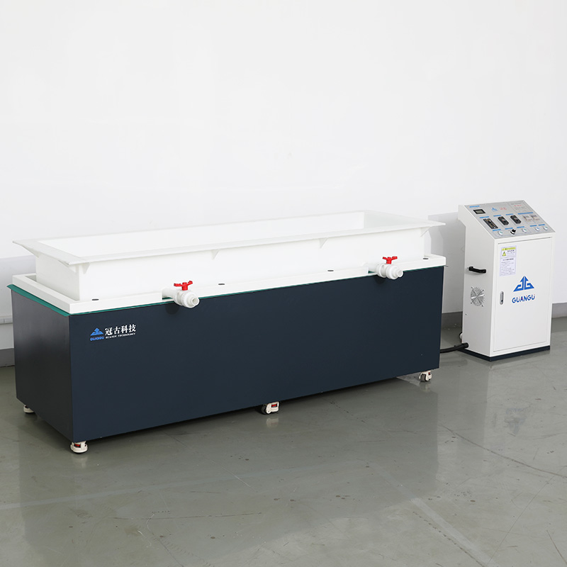 全自動磁針拋光機在原有的磁力拋光機的基礎上,增加2-3個機組磁場左右移動,大大改善了整個拋光的均勻度,產品在研磨桶內無盲區,特別是磁盤中心及四周位置。